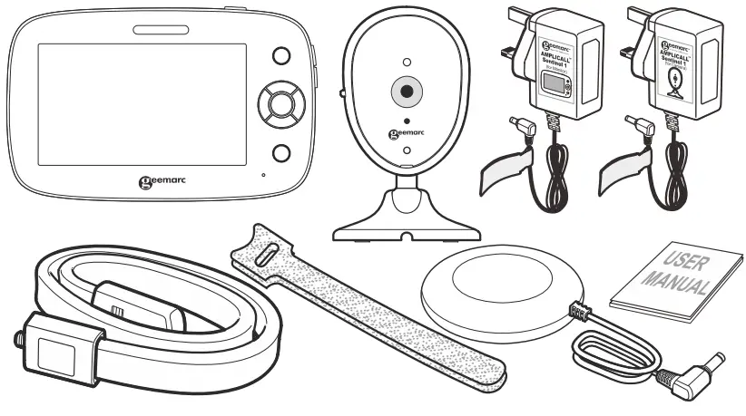 Skærmen har 2-vejs kommunikationssystem, vuggeviser, temperaturføler samt dag og natskærm.